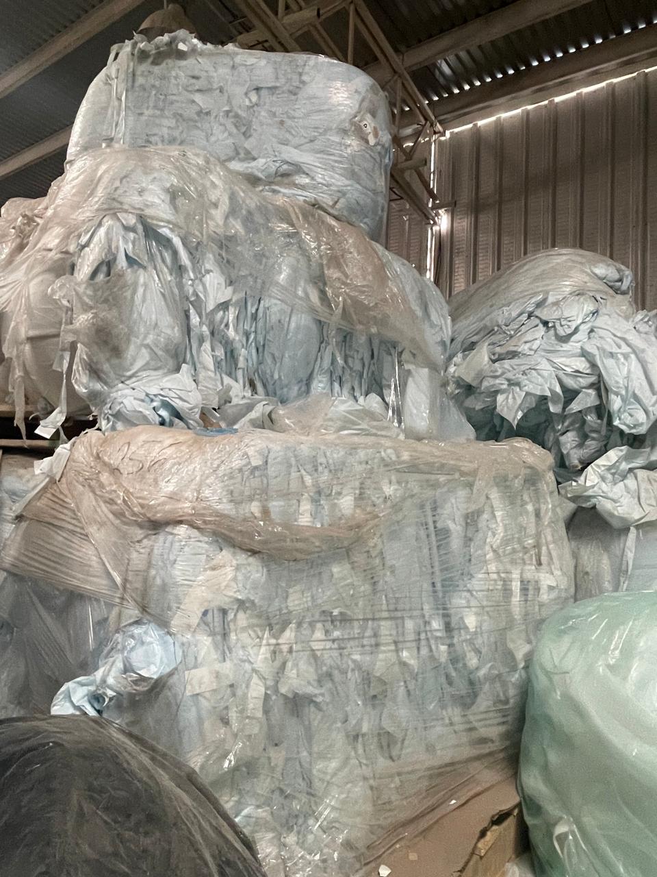 PP (Polipropileno) no tejido, comúnmente conocido como “nube” o “pellón” en la industria textil y de reciclaje.